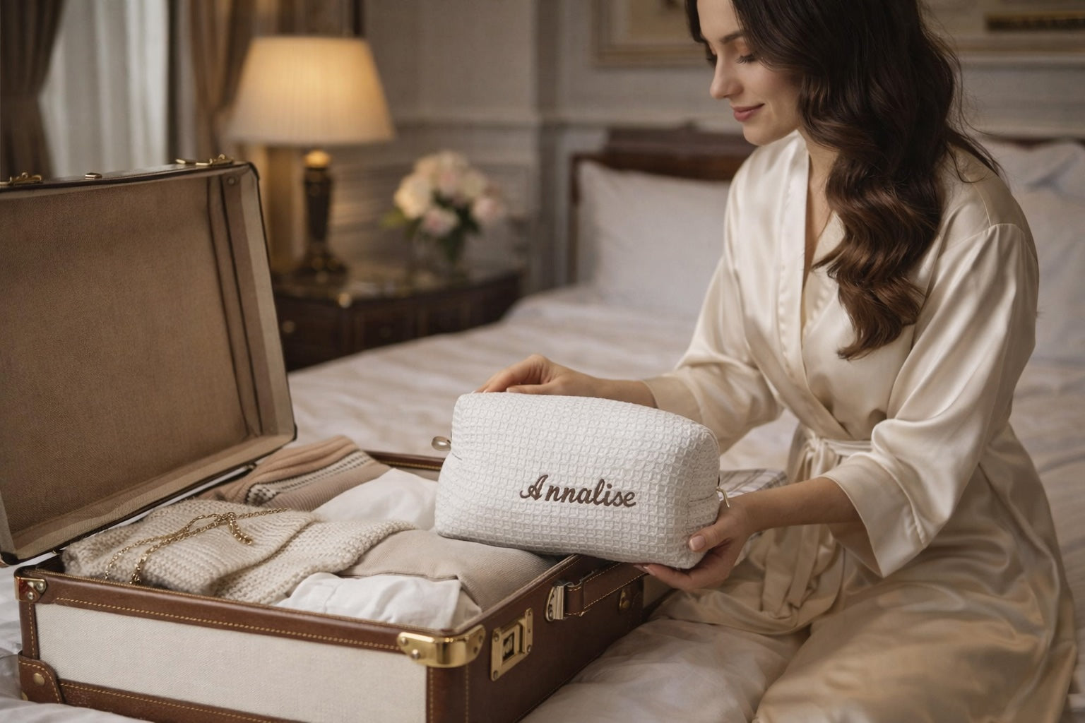 Bring style, organization, and a personal touch together with this Elegant waffle-design travel makeup bag, thoughtfully crafted for everyday use and travel. Made from high-quality, durable fabric, its textured waffle exterior offers a refined look while helping the bag maintain its shape over time.